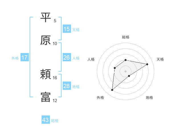 平原 頼富さんの総格は43画の2点!