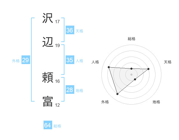 沢辺 頼富さんの天格は36画の3点!