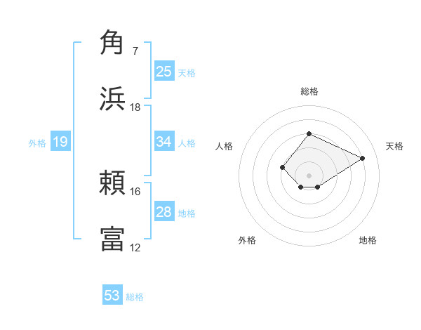 角浜 頼富さんを姓名の画数から五運を鑑定