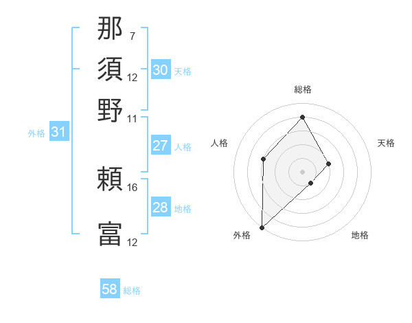 那須野 頼富さんを姓名の画数から五運を鑑定