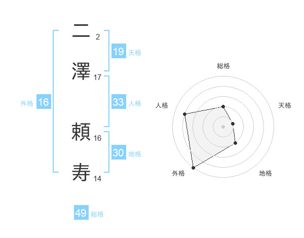 二澤 頼寿さんを姓名の画数から五運を鑑定