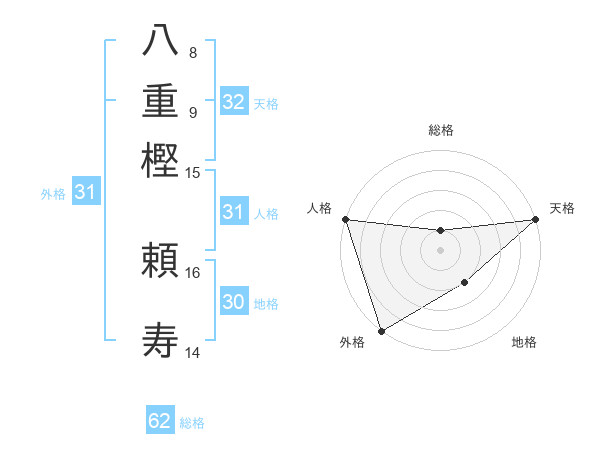 八重樫 頼寿さんを姓名の画数から五運を鑑定