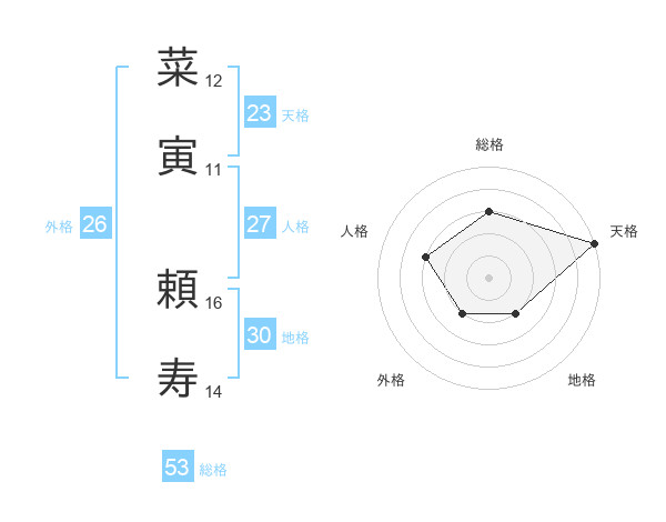 菜寅 頼寿さんの総格は53画の3点!