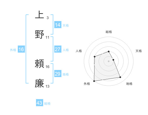 上野 頼廉さんを姓名の画数から五運を鑑定