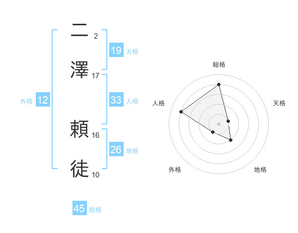 二澤 頼徒さんの総格は45画の4点!