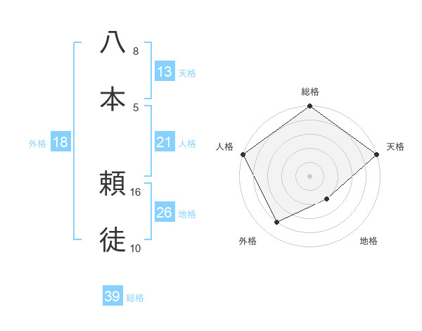 八本 頼徒さんの総格は39画の5点!