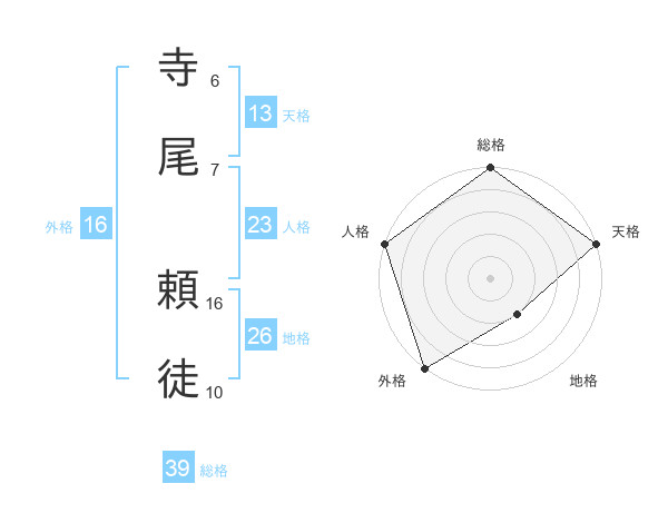 寺尾 頼徒さんの総格は39画の5点!