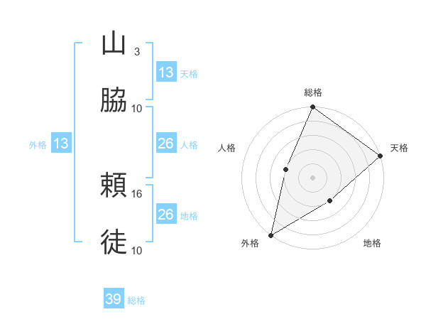 山脇 頼徒さんの総格は39画の5点!