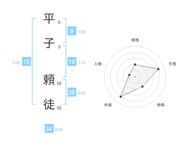 平子 頼徒さんを姓名の画数から五運を鑑定