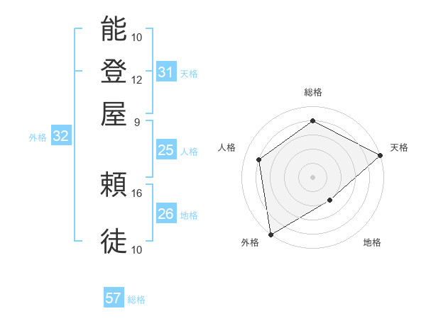 能登屋 頼徒さんを姓名の画数から五運を鑑定