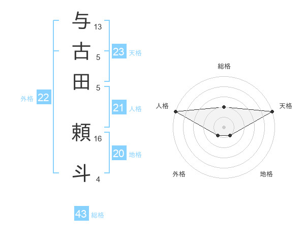 与古田 頼斗さんを姓名の画数から五運を鑑定