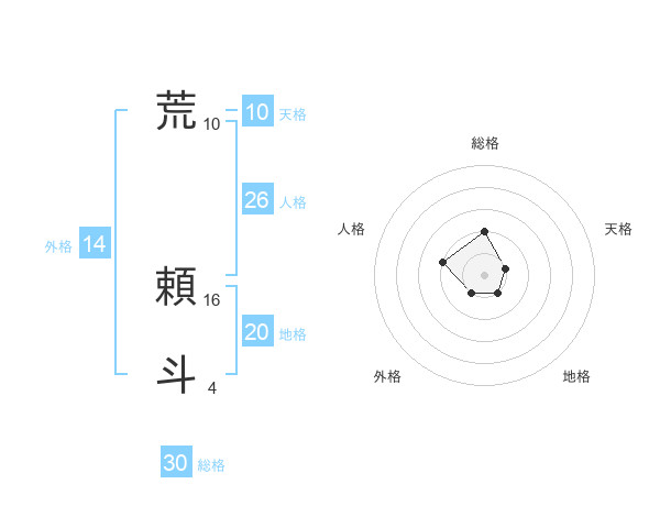 荒 頼斗さんを姓名の画数から五運を鑑定