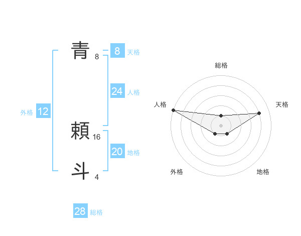 青 頼斗さんの総格は28画の1点!
