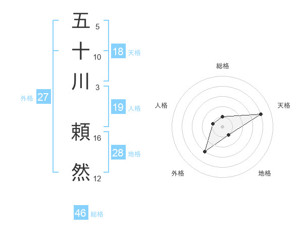 五十川 頼然さんを姓名の画数から五運を鑑定