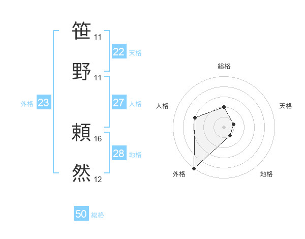 笹野 頼然さんを姓名の画数から五運を鑑定