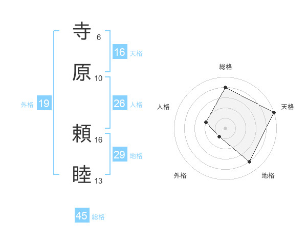 寺原 頼睦さんの総格は45画の4点!