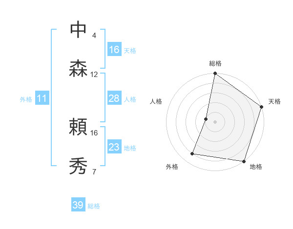 中森 頼秀さんを姓名の画数から五運を鑑定