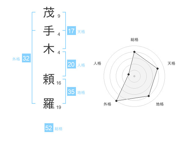 茂手木 頼羅さんを姓名の画数から五運を鑑定