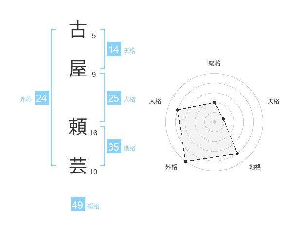 古屋 頼芸さんを姓名の画数から五運を鑑定
