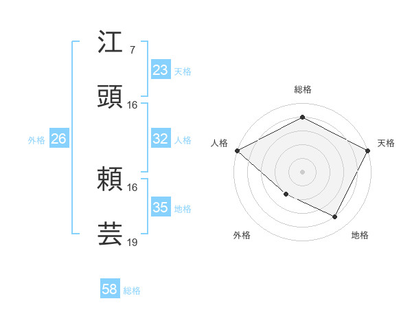 江頭 頼芸さんを姓名の画数から五運を鑑定