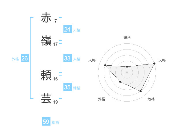 赤嶺 頼芸さんを姓名の画数から五運を鑑定