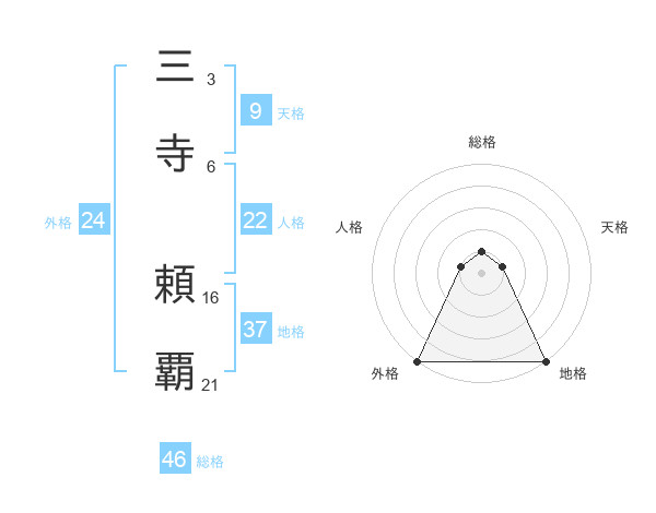 三寺 頼覇さんを姓名の画数から五運を鑑定