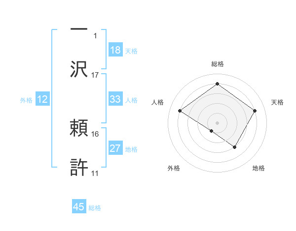 一沢 頼許さんの総格は45画の4点!