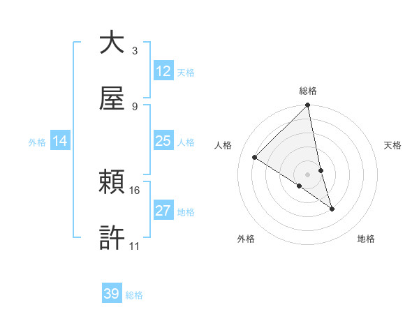 大屋 頼許さんの総格は39画の5点!