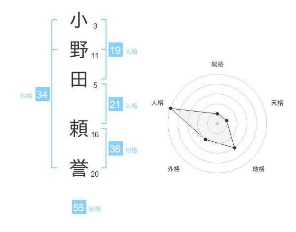 小野田 頼誉さんを姓名の画数から五運を鑑定