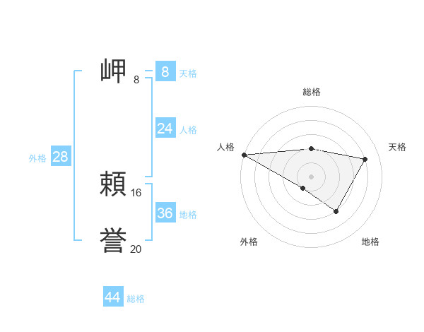 岬 頼誉さんの総格は44画の2点!