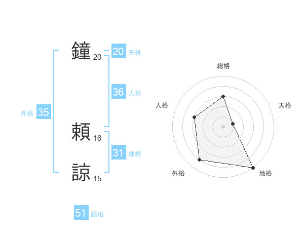 鐘 頼諒さんの総格は51画の3点!