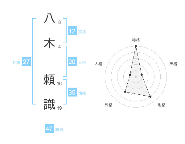 八木 頼識さんの総格は47画の5点!