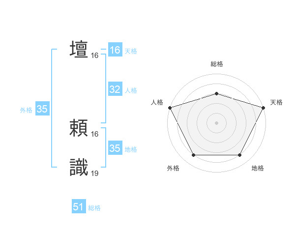 壇 頼識さんの総格は51画の3点!