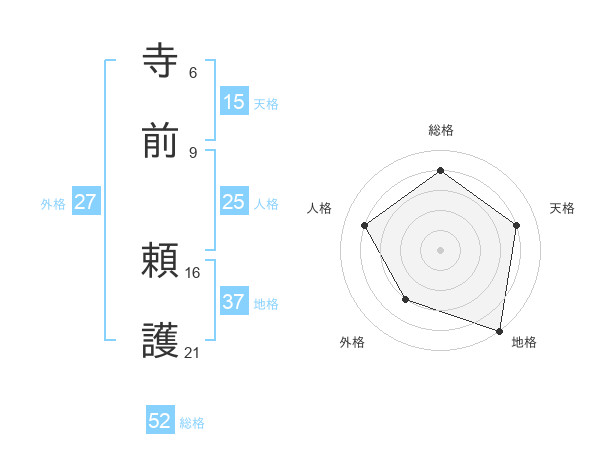 寺前 頼護さんを姓名の画数から五運を鑑定