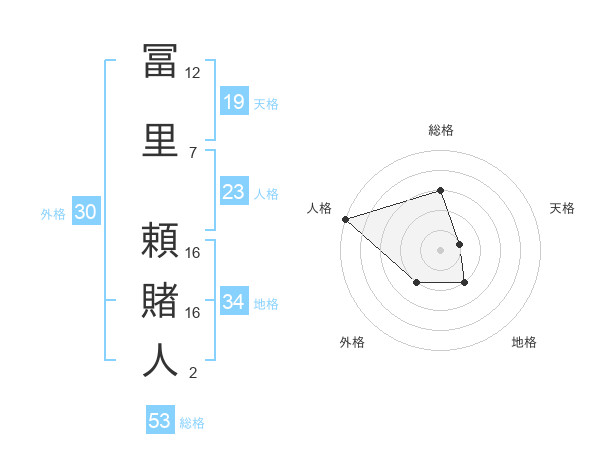 冨里 頼賭人さんを姓名の画数から五運を鑑定
