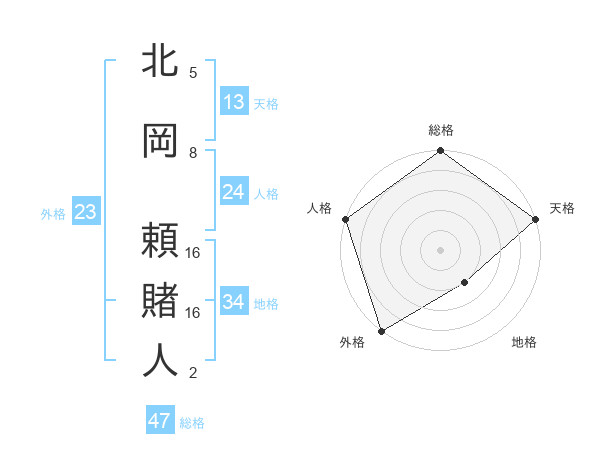 北岡 頼賭人さんを姓名の画数から五運を鑑定