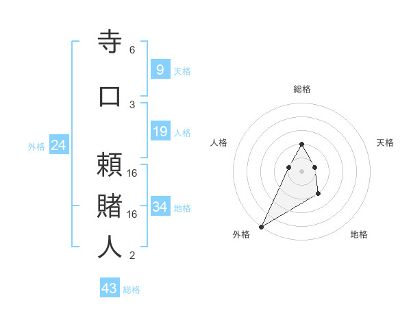 寺口 頼賭人さんを姓名の画数から五運を鑑定