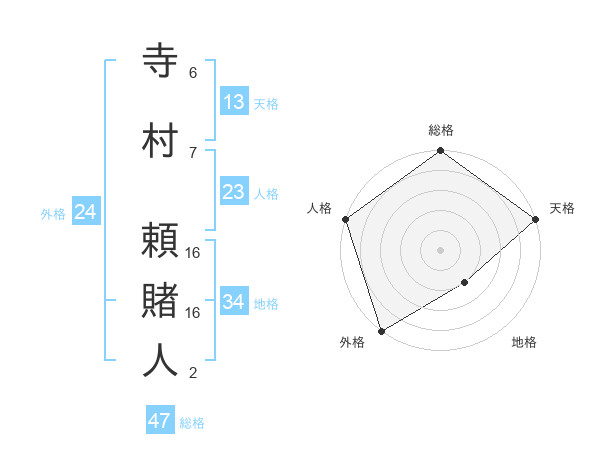 寺村 頼賭人さんの総格は47画の5点!