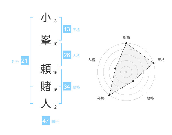 小峯 頼賭人さんを姓名の画数から五運を鑑定
