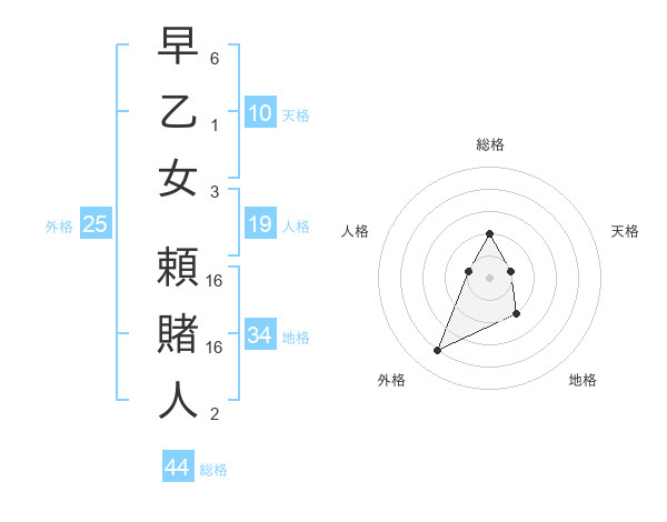 早乙女 頼賭人さんを姓名の画数から五運を鑑定