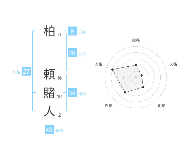 柏 頼賭人さんを姓名の画数から五運を鑑定