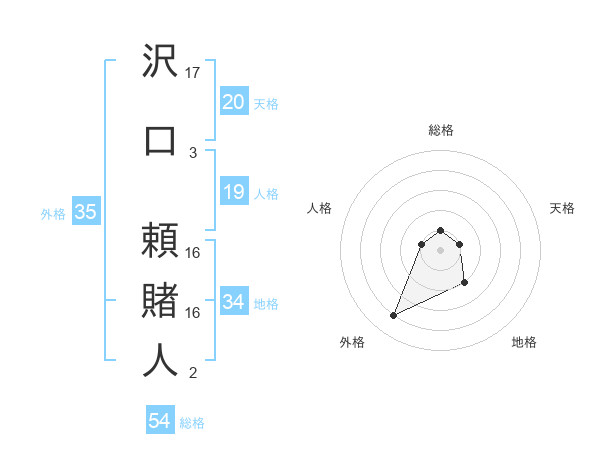 沢口 頼賭人さんを姓名の画数から五運を鑑定
