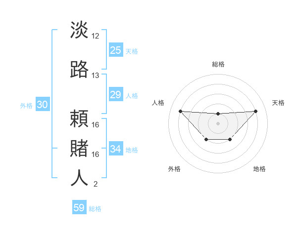 淡路 頼賭人さんを姓名の画数から五運を鑑定