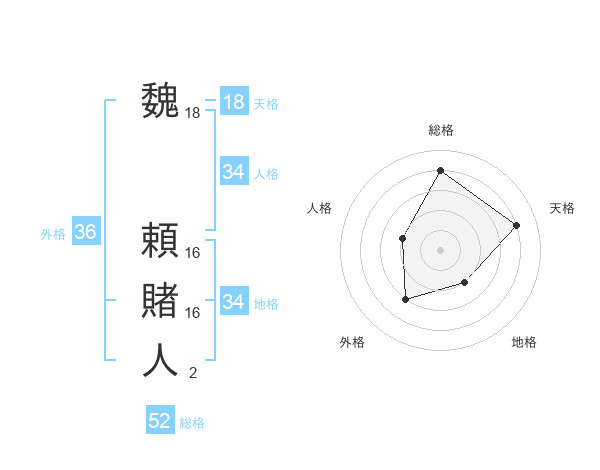 魏 頼賭人さんの総格は52画の4点!