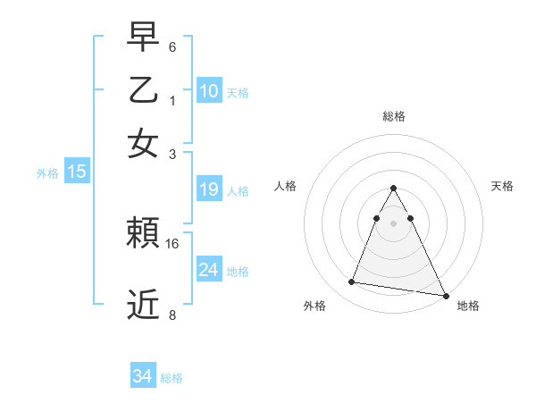 早乙女 頼近さんを姓名の画数から五運を鑑定