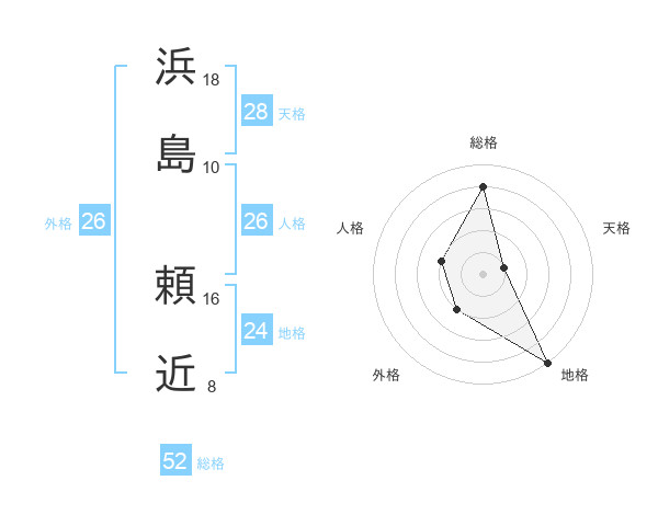 浜島 頼近さんを姓名の画数から五運を鑑定