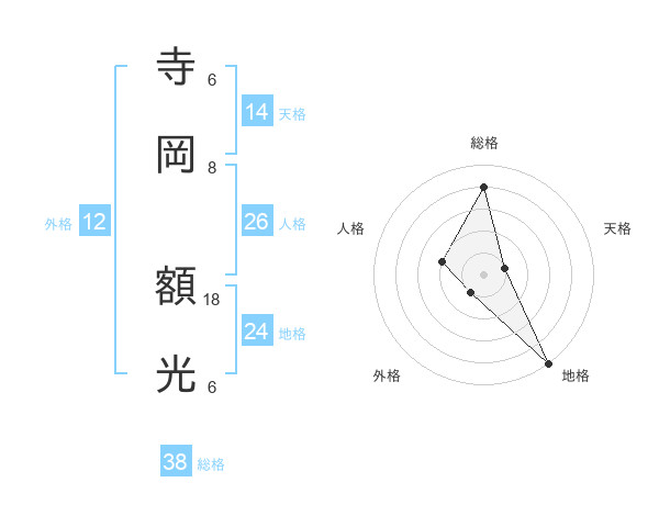 寺岡 額光さんの総格は38画の4点!