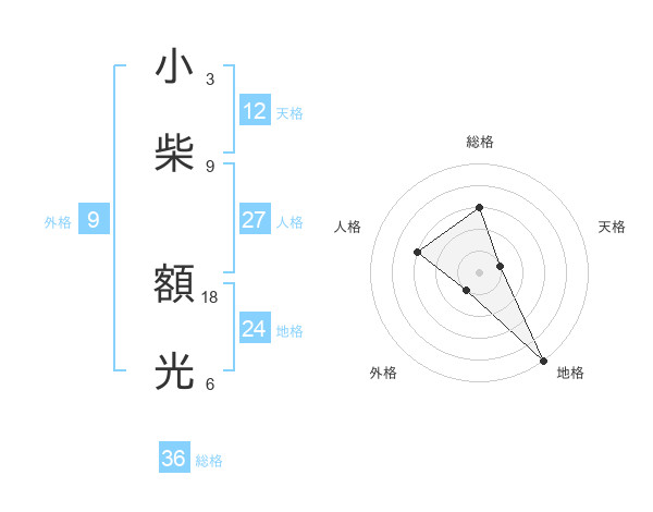小柴 額光さんの天格は12画の1点!