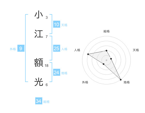 小江 額光さんの総格は34画の2点!
