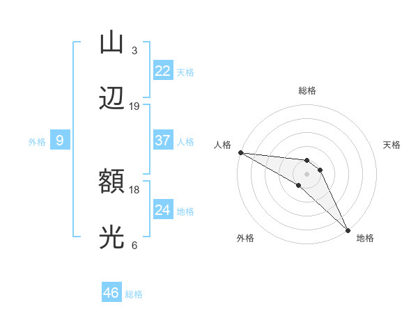 山辺 額光さんの総格は46画の1点!